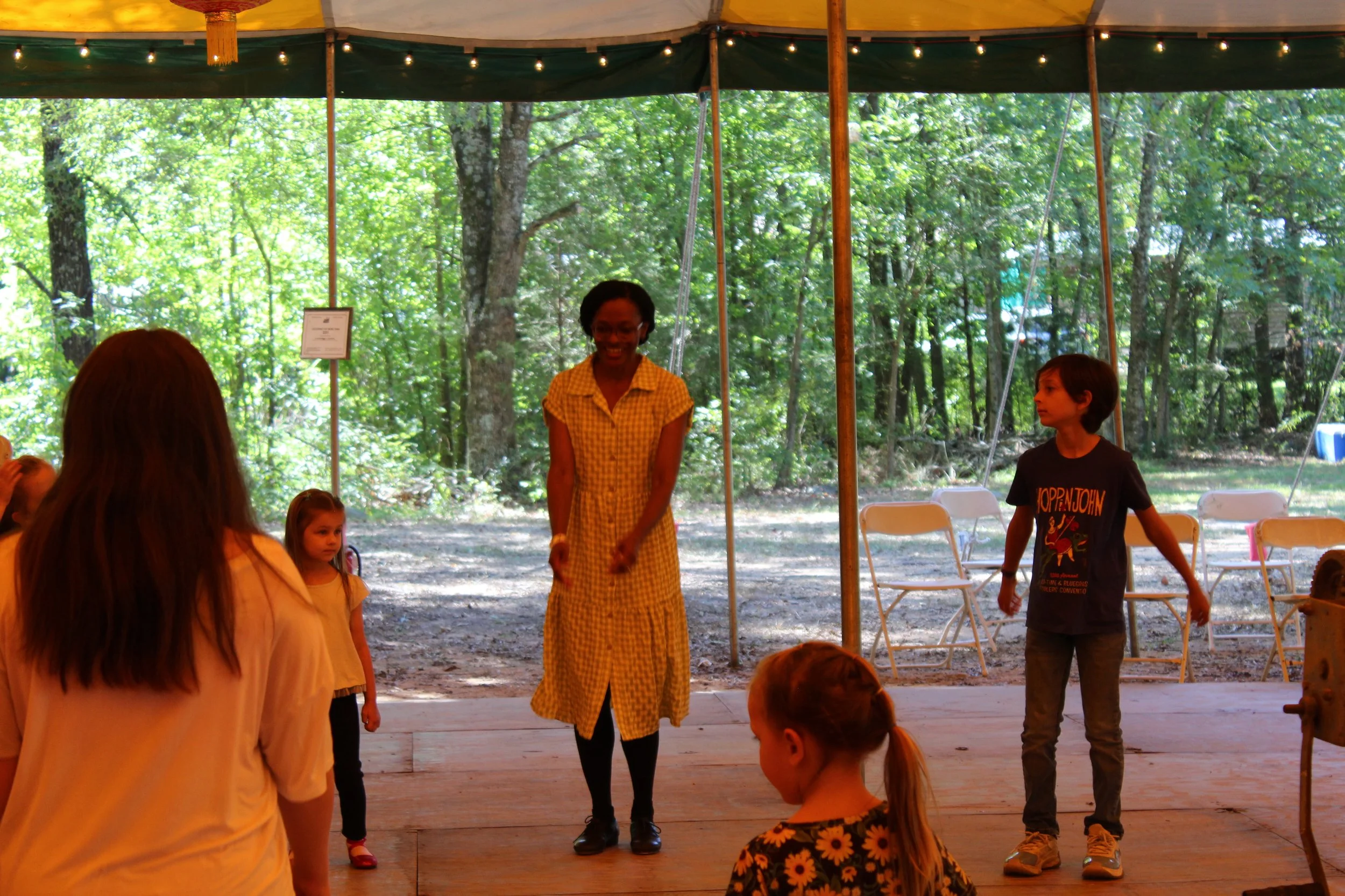 Suggested for ages 5 and up, this workshop provides a basic introduction to clogging, just for kids! Participants will learn fundamental clogging steps through fun, confidence-building exercises. They’ll also have opportunities to express themselves creatively with this energetic dance tradition. Comfortable, closed-toe shoes are recommended. Tampa Enoch is an educator, dancer and musician from Mebane, North Carolina. At an early age, she learned to flatfoot and buck dance from her grandmother, and she carries the tradition forward by teaching percussive dance to children both in her family and in the wider community. Tampa has been a member of Chapel Hill’s Cane Creek Cloggers since 2014 and has worked in public libraries as a youth services librarian for 19 years. In her free time she enjoys playing banjo and sharing about the rich and complex history of the instrument. Located in the Dance Tent.
